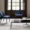 Armchair with Metal frame padded and upholstered. Piping can be in matching colour or contrast colour. Also available in the version with quilted backrest (only for Nordic fabric, Eco leather and Premium nappa leather).