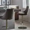 Barstool with lacquered Metal frame, seat and back upholstered and covered. Piping can be matching colour or contrast colour. Also available in the version with quilted backrest (only for Nordic fabric, Eco leather and Premium nappa leather).