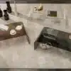 Sinuous and minimal coffee-table, in extra-clear, bronzed or fumè finish. Available in three different sizes.
