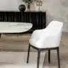 The Cleo armchair are an expression of timeless glamour. Comfortable and solid, Cleo enhances any living space with its high-impact identity. Also available in the Élite version, with elegant diamond quilting on the backrest.