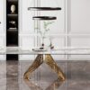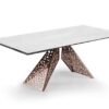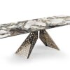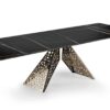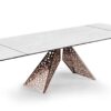 Extensible dining table, with top and extensions of glass. Base and track of chromed or painted metal. A very easy patented mechanism to pull out the lateral extensions allows the widening of the top of cm 80. Availabe also with ceramics tops.