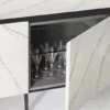 Sideboard with Wooden frame, 3 hinged doors with 45° degrees cut. Groove opening system. Top, frontal and side panels in SuperCeramic or SuperMarble.
