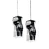 Pendant lamp in transparent, grey, tobacco or amber-iridium Murano glass. available also with sputtering finish bronze, silver or copper. Black ceiling support. LED light.