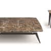 The softly-rounded shape of the David tabletops are set off by their special, smooth, bevelled edges. Available in Dark Emperador and Carrara marble and in the three Chalk, Anthracite and Very dark brown lacquers.