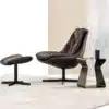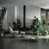 Armchair with swivel base in chrome or lacquered Metal, shell in fire retardant cold foamed polyurethane with a Metal insert. Back and sitting cushions in self-binding Fibre, with removable cover in Premium tessuto Nordic, pure virgin wool, Kvadrat Field fabric, Kvadrat Coda fabric and Premium Nappa Leather.