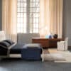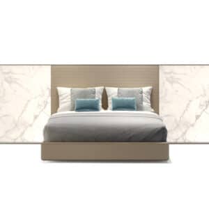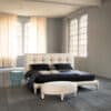 Delta is a double bed with contemporary lines and a button-tufted padded headboard. Every single aspect of the coverings and seams is crafted with the utmost attention to detail, providing a bold statement of absolute sartorial elegance. A bed that encapsulates all the artistry behind the know-how of Italian artisans and weavers.