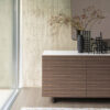 The Dolce vita sideboard is the result of a dialogue between the sober linearity of the structure and the plasticity of the surface, characterised by an original horizontal wavy pattern extending from the doors to the sides. The overall effect is an understated, seductive three-dimensionality and perfect aesthetic balance. Able to fit into any context in a versatile manner, expressing a refined and functional design, the Dolce vita sideboard impresses with the quality of the materials, the accuracy of the workmanship and the attention to every detail: an example of how the art of woodcraft can be projected into the contemporary world.