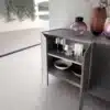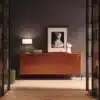 This is a family of storage units for the living room that can be customised on four sides, in order to also be used in the middle of the room. It is characterised by rounded sides. Tray tops featuring recessed tops in matt or glossy lacquer finish with the option of adding a ceramic or smooth back-lacquered glass top.