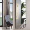 Rectangular mirror with fused glass corner. Available in different colors.