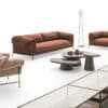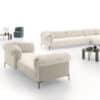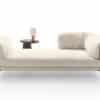 Drop sofa is inspired by the idea of a dress or jacket laid over the seat becoming the padding. The seat and backrest fabric looks slightly crinkled and rucked up, draped over a rigid frame holding everything in place. As though it were a bedroom chair with clothes casually strewn over it.