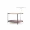 Side table with metal structure in Bronze finish. Top and middle shelves in extra clear transparent glass 5mm thick. Bottom plate in Marmoreflex/Legnoreflex.
