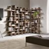 Elisabeth is an asymmetrical modular bookcase, ideal for wall, corner or stand-alone. It is characterized by an alternation of large and small shelves that create spaces of different sizes and capacities.