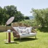 The idea of sofa meets the bed: and here is daybed. The one from the Emma Cross collection stands out for the shape, decidedly cocooning thanks to the backrest-armrests combination, distinguished by the weaving, handmade in acrylic fabric Band, on a powder-coated aluminium frame. The seat cushion with Dryfeel® foam padding, suitable for outdoor use, and the 7 back cushions are included.
