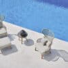 With its elegant design it finds space in gardens, terraces, balconies, verandas, porches, patios, swimming pools in residential and contract environments.