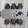The top with a rounded silhouette and tapered legs, whose profile tapers in the lower part, tell of a project designed to experience pleasant convivial moments in the open air.