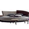 The headboard of this round bed is made of two curved parts and it is covered in fabrics and leather from our collection