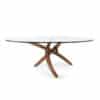 Dining table with legs in solid Canaletto Walnut or in Canaletto Henné or in satin brass or dark brass finishing. Metal connectors in brass finish. Top in 15 mm thick transparent glass