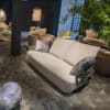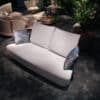 This comfy, characterful sofa is designed for indoors and outdoors. A curved metal frame envelops the magnificent diamond-shaped seating and also forms the backrest, which supports the cushions to form deep, comfortable seating. An interplay of materials and sizes creates a symphony of perfect design.