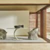 A silhouette with fluid and soft lines that gives the space an original shape.
