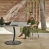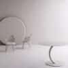 The Flexion table, characterized by a curved stem with different circular, elliptical or organic tops, is able to adapt to the most different outdoor environments.