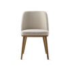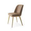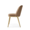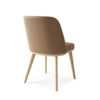 This is due to its enveloping and padded curved multi-layer shell and the soft seat with elastic strap structure supported by the refined wooden base with four conical legs made in tones that combine well with the finish of the shell.