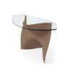 Console with base in curved glass, extraclear, bronze or smoke-grey with sandblasted finish. Available also in sandblasted and lacquered glass. Glass top 12 mm thick.