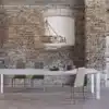 Table with extensions and lacquered Metal frame.Top in Glossy glass, Velvet matt anti-scratch lacquered glass, SuperCeramic or SuperMarble.