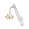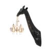 Giraffe In Love Wall Lamp, designed by Marcantonio, is a giraffe neck that holds a classic Marie-Thérèse style chandelier, in a wall version that allows bringing irony and lightness in every living space. The giraffe lamp comes equipped with a metal support to be hanged on your walls.