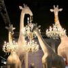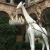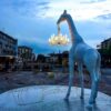Love makes people crazy, everyone knows that. But what is going to happen when Cupid’s arrow hits a 4-meters-high giraffe? Marcantonio’s visionary sketches answered to that by creating Giraffe in Love, a dreamy giraffe holding a classic Marie-Thérèse style chandelier. Giraffe in Love Outdoor is a giraffe lamp in the size of an authentic young giraffe, suitable for outdoor settings, thanks to the wind and water-resistant chandelier.