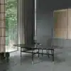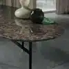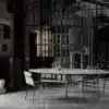 Table fix with lacquered Metal frame and decorative feet. Top in Veneer wood, Veneer wood with solid edge, Solid wood, heritage walnut Solid wood, Glass, Velvet matt anti-scratch lacquered glass, SuperMarble or natural Marble.