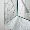 The Gocce mirror’s perfect accurate geometric lines are enhanced by a characteristic pattern in transparent resin that emanates three-dimensional brightness and simulates the effect of drops of water on the mirror.