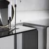 Console in bent glass extralight, smoked or lacquered mono or two-tones. Available also with glass shelf.