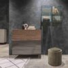 Combined with drawers, the desk hides behind a suspended storage and space saving system, flexible in the living room / office space. A real and tidy home office, equipped and with a compact volume.