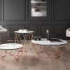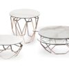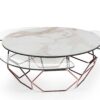 EXTENSIBLE COCKTAIL TABLE WITH CERAMIC AND GLASS TOPS, PAINTED OR GALVANIZED STEEL BASE. EQUIPPED WITH AN INNOVATIVE MECHANISM THAT THROUGH THE UPPER ROUND TOP ROTATION, ALLOWS THE LOWEST 3 SMALL TOPS TO OPEN AUTOMATICALLY. AVAILABLE ALSO WITHOUT MECHANISM.