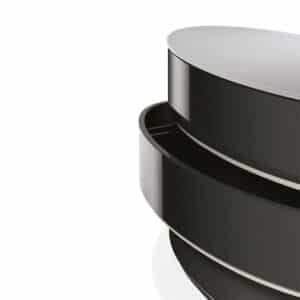 The HUGS collection has a wooden structure with 45-degree grooves and is available both in a wood veneer version and in a glossy or matt lacquered version in different colours. The feet are in varnished and rounded solid wood with details in Bronzed Brass or varnished metal.