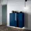 Frames and fronts in wood finish and glossy or matt lacquer, Metal Standard, stone, marble effect or Ecomalta. Openings with hinged doors, flap doors and push-pull drawers. Some sideboards are available in a wall-mounted version, while those with a methacrylate or metal base are equipped with an anti-tip bracket to be fixed to the wall.