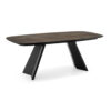 ICARO is a fixed table with a ceramic top and a base made of veneered wood.