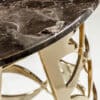 The laser-cut steel plate base is milled and bent to form a three-dimensional pattern; golden and bronzed finish or leaf-work decoration, create a strong visual impact. Isidoro occasional table is perfect as a sofa-side table in the living room, or as a bedside table in a classic style bedroom.