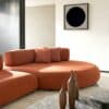Compositional freedom combined with a yearning for informality have given rise to a sofa consisting of an archipelago of rounded shapes. Islands providing comfortable seats, with soft cushions to be arranged to your liking, including a backrest with a variable tilt angle that distinguishes the ensemble and adapts to varying body shapes and to different surroundings.
