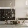 Rectangular fixed table, rectangular extendable table, barrel fixed table, barrel extendable table with lacquered steel structure. Tabletop available in SuperCeramic, SuperMarble, veneered wood, solid wood, glossy extra-white glass, and scratch-resistant velvet glass.