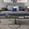Coffee and side tables with metal base in bronze finish and top in 10mm thick Marmoreflex/Legnoreflex