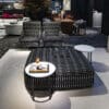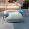The base of the Table is in chrome-plated metal and the top is made of round and rectangular wood.