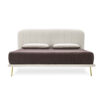 Modern, simple and with harmonious and elegant shapes. The LeMarais bed is clearly inspired by the taste for Art Deco, but with a more contemporary touch provided by the vertical piping of its wide headboard. The elegant and slender metal base is enhanced by the light and sinuous structure of the headboard. The mattress rests on the slatted base inserted in the fabric.