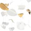 Lamp with mirror glass support with built-in LED and pendant leaves of 3 different sizes, in hand-made curved etched glass, with engravings. Optional the leaves covered in 24K fine gold.