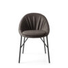 The shell, characterized by rounded shapes and soft padding, is supported by a subtle metal structure. The integrated cushion, in the same color as the shell, guarantees maximum comfort.