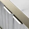 Buffet with bottom, top and legs in Bronze finish. Marble glass top cover. 4 hinged doors and Led strip under the top with light switch sensor under the base. Available in 2 versions: with structure in Supersilver glass with the 2 central doors and a section of the back with London engravings, very suitable as room divider, or with structure in extra-clear glass and back in MarmoReflex.