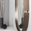 Well-balanced forms and soft shapes without sharp edges are the distinguishing features of the Lumière mirror, together with eye-catching details like the slim metal frame that wraps around the mirror. The metal band seems to increase the mirror’s brightness, its depth adding further reflections.