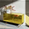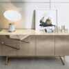 Magda is a new collection of sideboards that combines the material aspect and the soft grains of the marble effect ceramic with the precious and fascinating shades of the Sovet’s mirrors.