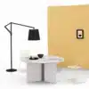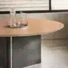 Fixed round table, concrete base and top in Veneer wood, Glossy glass, matt Velvet matt anti-scratch lacquered glass or SuperMarble.