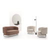 Marabù is the outcome of a functional and aesthetic contrast. A soft, embracing seat, with a voluminous body supported by a curved tubular frame that appears to let it float in mid-air.